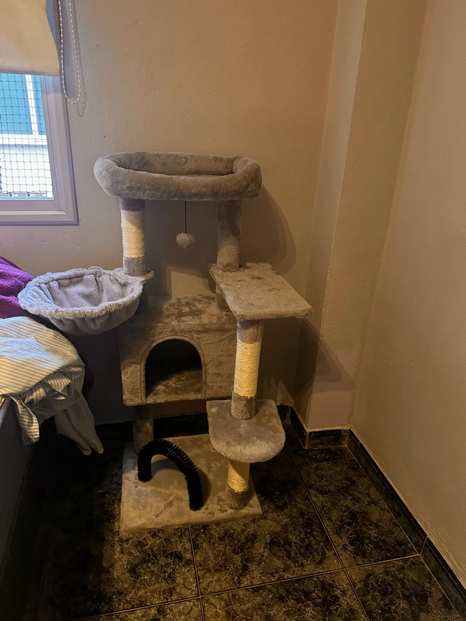 🐾 Activités variées : Un griffoir en sisal, une brosse intégrée et une balle suspendue pour des heures de jeu et de bien-être.