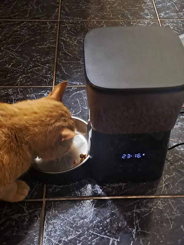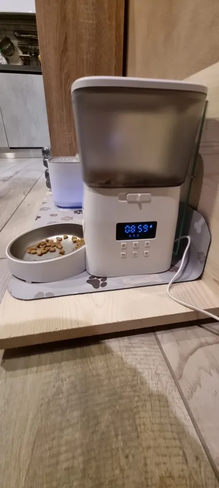 Peut distribuer jusqu'à 8 repas par jour, chaque repas, vous pouvez planifier le nombre de croquettes à laisser sortir. Planifiez-le et vous l'oubliez super!. J'ai pris la Mosel sans WiFi car je la considère plus fiable en programmation et en fonctionnement (moins c'est mieux). Même si la fiche ne perd pas sa mémoire, je l'ai attachée à une banque d'alimentation que j'avais autour donc je suis encore plus sûr que cela fonctionne toujours.
